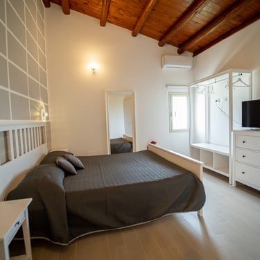 La nostra suite Guttuso offre un'esperienza di lusso con un ambiente spazioso, arredamento elegante e una vista mozzafiato sulla campagna siciliana.