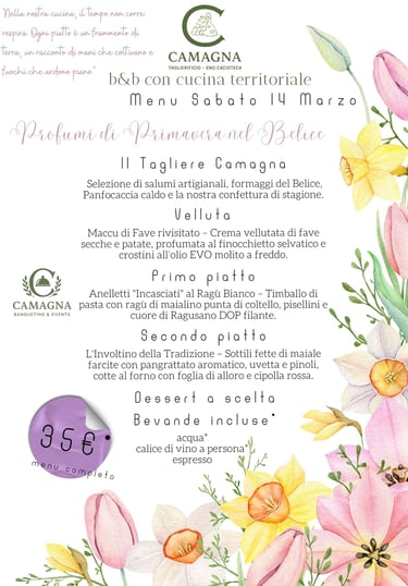 Ogni proposta valorizza i prodotti a KM 0 della Valle del Belìce, rispettando stagionalità, qualità delle materie prime e identità del territorio.